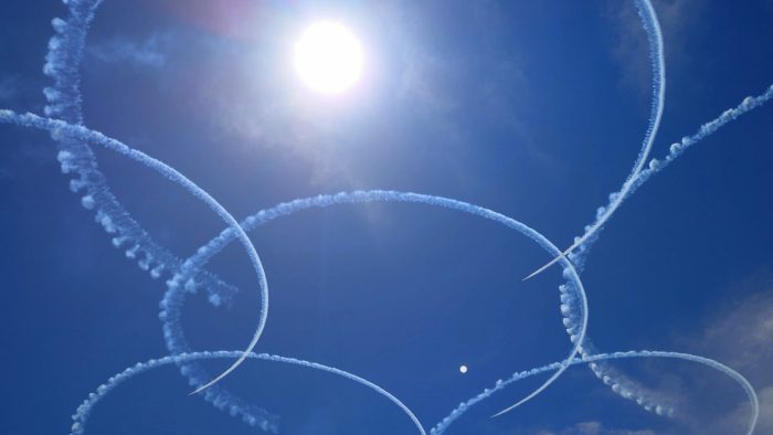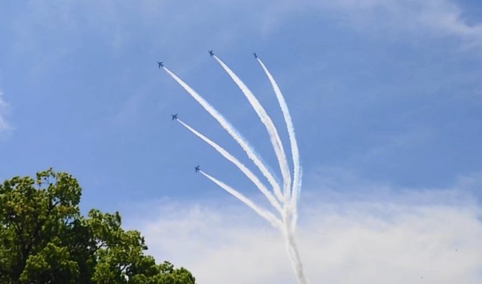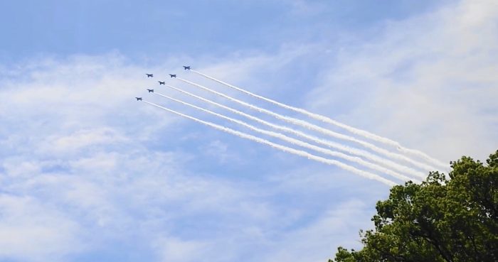 真っ青な空をブルーインパルスが飛んでくれました。皆さんも見上げましたか?