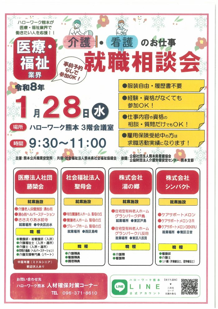 この度、1月28日にハローワークの主催による就職相談会が開催されます。