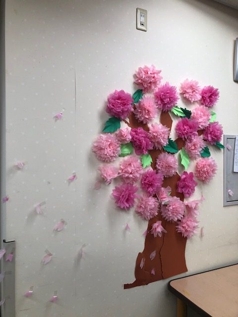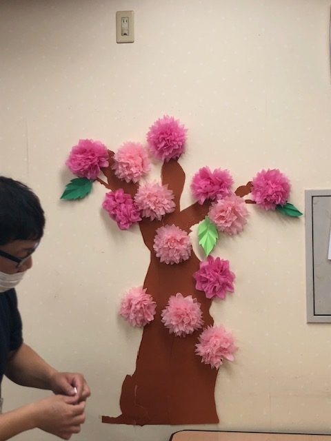 「まだ貼る場所はあるね?」と、皆さん積極的に参加してくださり、あっという間に見事な満開の桜が完成しました。