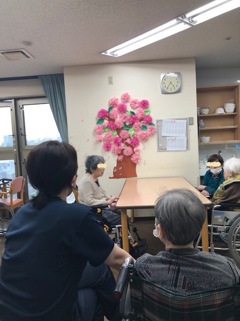 ・季節感の共有: 桜の装飾を通しての季節の移ろいを感じる心理ケア。